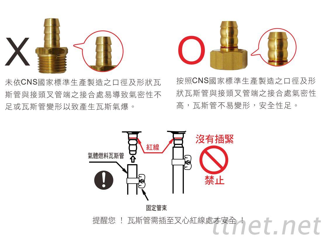 安装瓦斯管零配件时,建议您选用瓦斯专用零配件,勿使用水材或空压用的配件以
