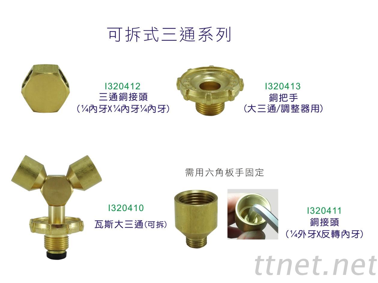 【瓦斯管配件】大三通(可拆)/铜把手/铜接头