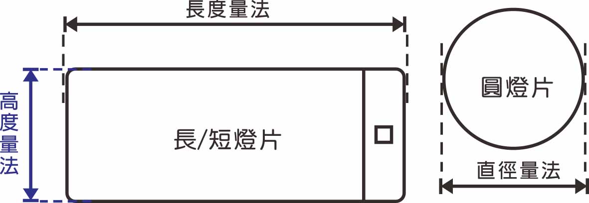 3.测量长度时请以灯片左右最大宽度为基准(如图示)