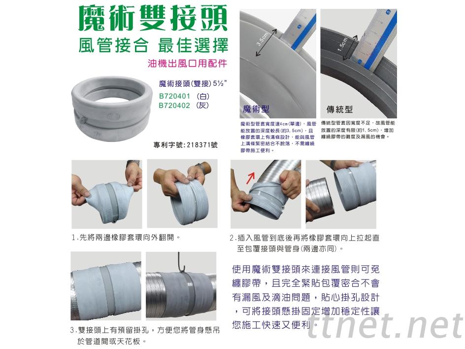 【工业用配件系列】魔术单/双接头 陆泰工业的各式各样风管零组件、瓦斯管、热水器、瓦斯炉、排油 烟机、强制排气管的零配件,已和各行各业紧密相扣,採用经济部标准检验局检验合格之CNS9620气体燃料专用橡胶瓦斯管、CNS检验合格瓦斯调整器等宽阔领域。 提升瓦斯器材及国内工业用管之品质适用于抽油烟机、浴室排风扇 、冷冻空调、电子、化学厂等各、输送耐磨管、化学用管、抗静电管、导电管、无尘室 用管、冷冻空调软管、吸尘浪管等工业用管类产业机械设备皆适用 , 例如:铝制伸缩风管、P U输送管、双层硅胶波布风管、尼龙布风 管、 P P折叠风管、内夹复合铝箔风管等等...以提升国内工业用管 之品质。 统领瓦斯管及瓦斯调整器系列产品通过国家商品标准检验合格取得商品安全标章及台湾区瓦斯公会保险认证合格 标示,并以消费者权 益为优先全国率先投保一亿两仟万元产品意外责任险,只要将包装内所附 保险标籤于安装。 主要产品,我要卖:风管零组件、瓦斯管、热水器、瓦斯炉、排油烟机、强制排气管的零配件