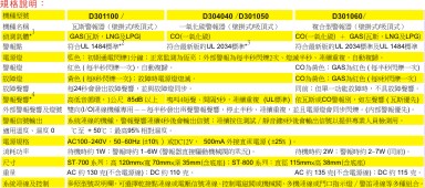 9.瓦斯警报规格符合UL1484标准;一氧化碳警报规格符合最新版的UL2034标准。